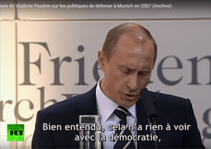 Ces paroles restent valables aujourd’hui. » [Le mémorable discours de Poutine à Munich, 2007. Traduction RIA Novosti.]