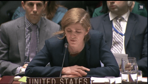 À cette occasion, la représentante des États-Unis, Mme Samantha Power, s’en prenait vivement à la République Arabe Syrienne, à la Fédération de Russie et à l’Iran : « Une centaine d’enfants sont coincés dans les décombres d’un bâtiment. Des terroristes, clairement. Ces jeunes enfants doivent être des terroristes. Parce que tous ceux qui ont été bombardés ou exécutés sont des terroristes. Tous. Même les bébés. Trois [États] membres de l’ONU encerclent les civils. Vous devriez avoir honte. Mais apparemment, cela vous rend encore plus motivés. Vous planifiez votre prochaine attaque. Êtes-vous incapables de ressentir de la honte ? [N’y a-t-il] Absolument rien [qui puisse vous faire honte] ? N’y a-t-il aucun acte de barbarie contre des civils, pas d’exécution d’un enfant qui vous dégoûte, même un peu ? Y a-t-il une chose sur laquelle vous n’allez pas mentir ? La justifier ? » [La Croix, Alep : tensions à l’ONU entre ambassadeurs russe et américain, 14 décembre 2016. Note FP : Les mots entre crochets sont repris par moi de la version anglaise.]