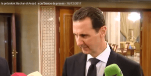 Le 18 décembre 2017, soit quatre jours après le fiasco des Pourparlers de Genève, le Président de la République Arabe Syrienne, Bachar El Assad, accordait une conférence de presse à Damas et répondait à cette accusation récurrente :