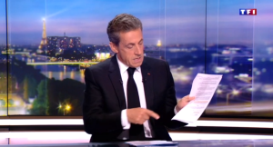 [Mais si, c’est important !… Monsieur Sarkozy balaie d’un revers de main, visible à l’écran, les autres personnes qu’un ordre judiciaire lui impose de ne pas voir…