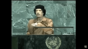 Voici ce que déclarait le Frère Guide, Muammar Gaddhafi, lors de son discours à la tribune de l’ONU, le 23 septembre 2009…