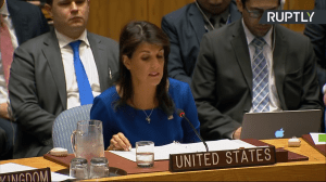 « Alors même que la Russie utilisait son pouvoir de veto, le régime syrien utilisait du gaz sarin. » Les États-Unis, par leurs porte-parole qui se succèdent à l’ONU, ne cessent d’affirmer, d’accuser, sans jamais apporter la moindre preuve de leurs allégations : c’était déjà la méthode suivie par Mme Samantha Power (2013-2017), la prédécesseuse de Mme Haley.