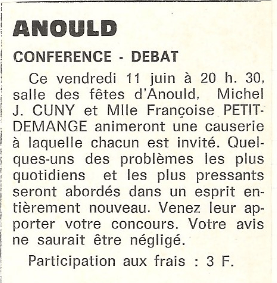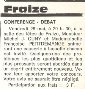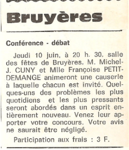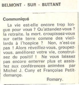 Sur le numéro des Annonces des Hautes-Vosges daté du 30 mai 1976, mais avec effet rétroactif sur les jours immédiatement précédents, cet encart apparaissait dans l’emplacement réservé à la localité concernée qui était également celle où l’hebdomadaire était imprimé sur les machines de son directeur de publication, René Fleurent :