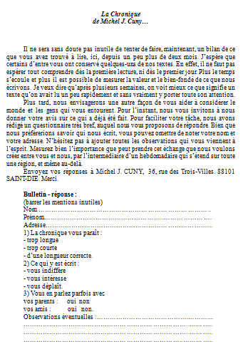 Une réflexion sur “Mai-Juin 1976 : Michel J. Cuny – Françoise Petitdemange à l’assaut du silence”