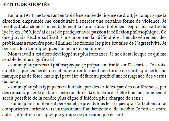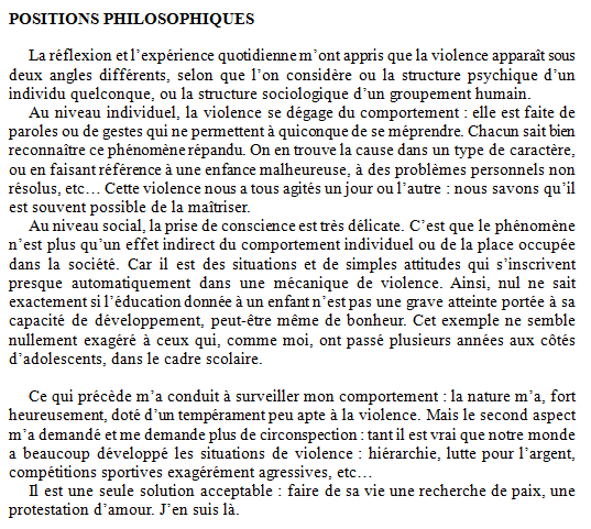 Quant à mes positions philosophiques, voici l’explicitation que j’en fournissais en annexe…