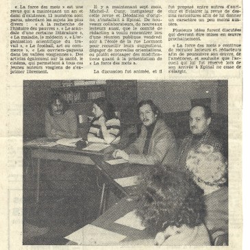 La Liberté de L’Est, 88 Épinal, Jeudi 10 Mai 1979 27. Michel-J. Cuny – La force d’écrire à partir du vécu