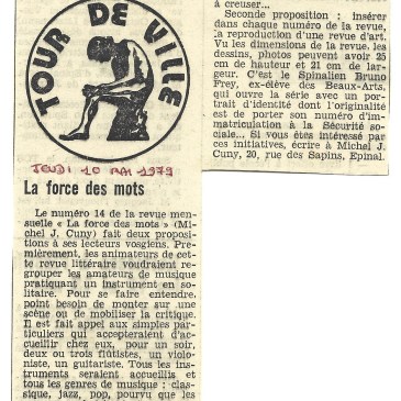 La Liberté de L’Est, 88 Épinal, Lundi 22 Janvier 1979 26. Tour de ville – La force des mots – Le numéro 14 de la revue mensuelle…